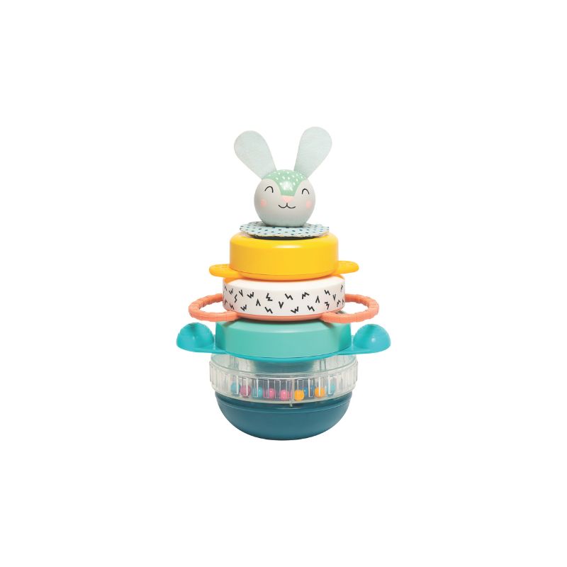 Detalles: Adorable apilador con 4 anillos de colores y un conejito encima. La base plana mantiene el apilador al alcance del bebé.