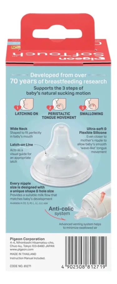 - El diseño de la tetina permite que el bebé use su lengua con un movimiento peristáltico, lo que estira el pezón hacia adelante y hacia atrás.