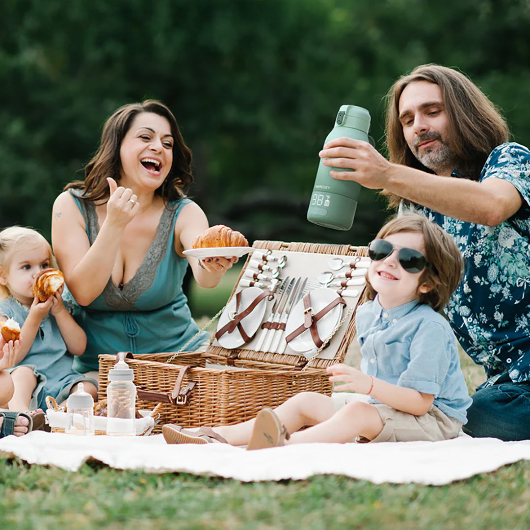 Batería para todo el día: con una sola carga puedes calentar 240 ml de agua hasta 24 veces o 120 ml de leche hasta 8 veces; se recarga en 90 min vía USB-C.
