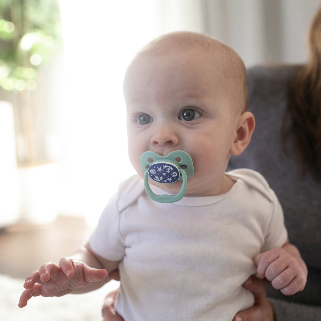 • Chupete reversible. Puede ir en la boca del bebé en cualquier dirección.