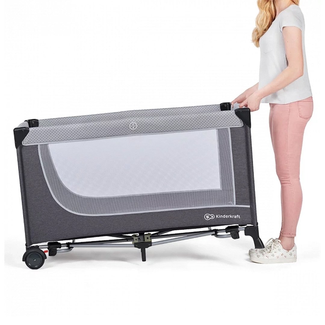 Tiene 2 niveles de altura para el colchón, te permitirán ajustar su altura al nivel del desarrollo y a las necesidades del bebé. Otra función especial, te permitirá convertir la cuna de viaje en una cuna mecedora. Además, una vez plegada la cuna, su tamaño es muy compacto ¡Compruébalo tú mismo! ¡Verás que lo necesitas!