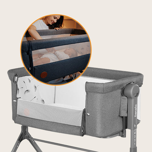 Los laterales de malla tienen dos funciones importantes: por un lado garantizan una ventilación adecuada en la cuna y, por otro, permiten a los padres tener contacto visual constante con el niño.