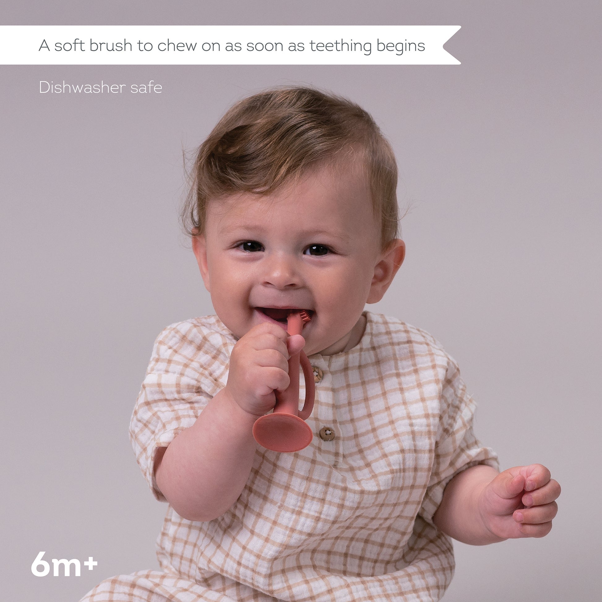 12 actividades para tranquilizar al bebé hasta que se duerma: 7 imágenes de doble cara (una en color y otra en blanco y negro) que cuentan una historia, una lamparilla musical, un peluche plano con un mordedor conejo, un cepillo de dientes para bebé…