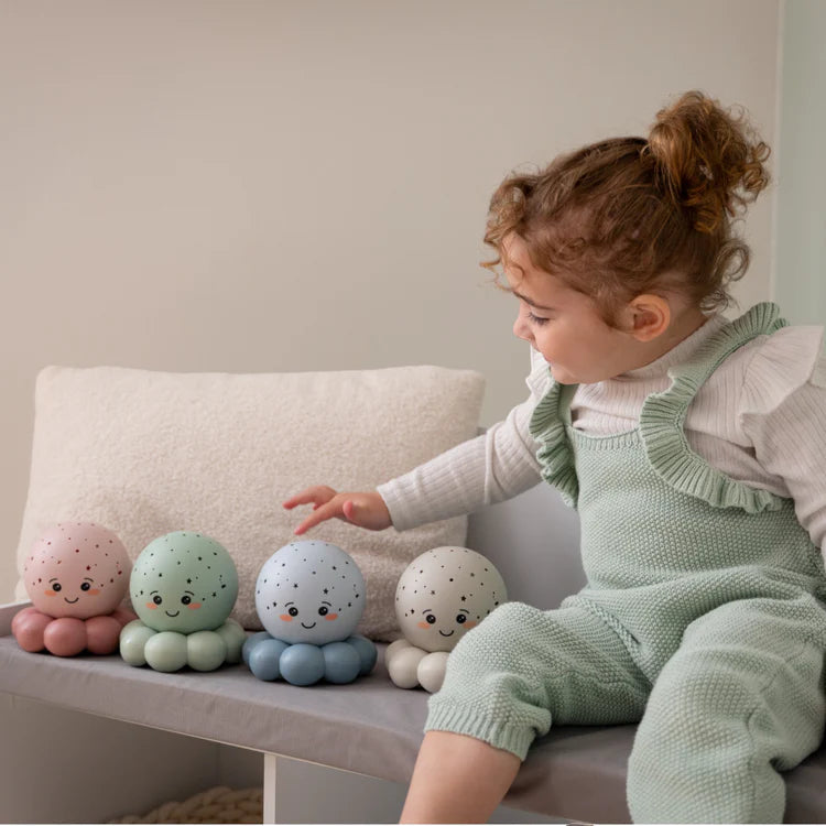 Tras 45 minutos relajantes de estrellas y peces, una función de apagado automático desactiva el pulpo, lo que ayuda a conservar la duración de las pilas.