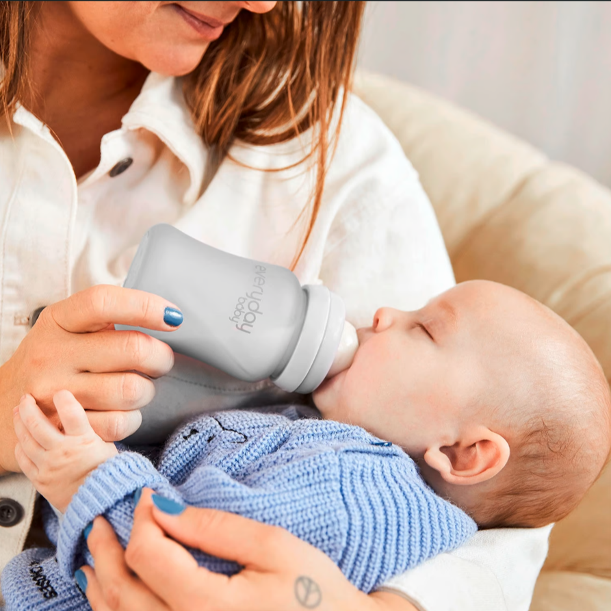Puedes agregar accesorios a la misma mamadera a medida que tu hijo crece, como asas de aprendizaje, boquilla para transformarlo en vasito y bombillas.