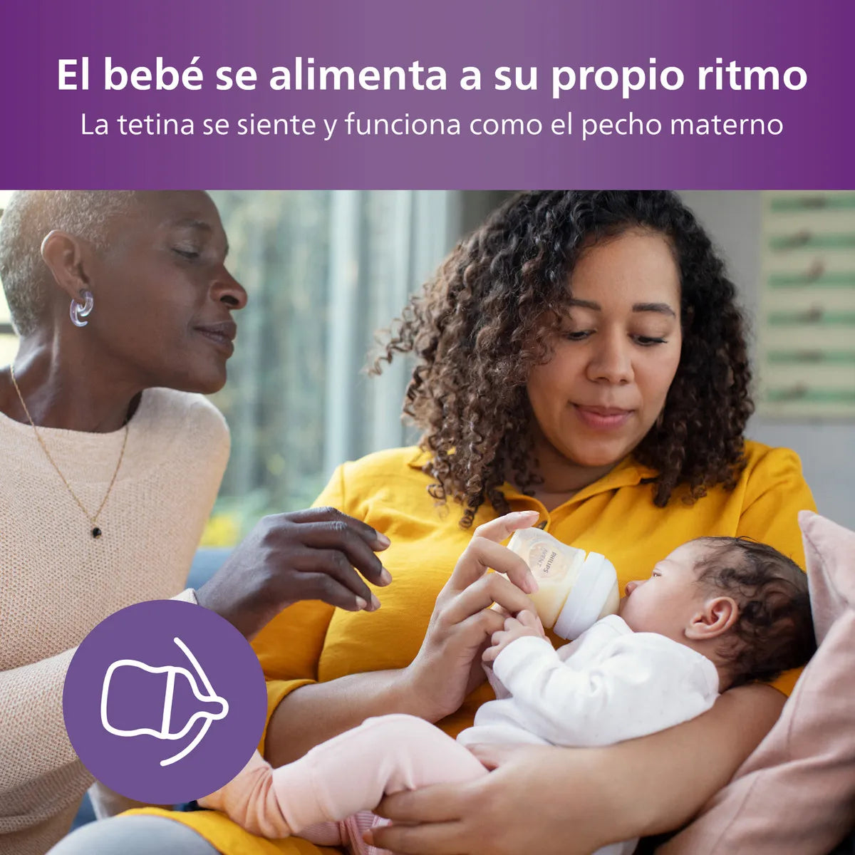 - La forma de la tetina y el innovador diseño de pétalos permiten un agarre natural, similar al pecho materno.