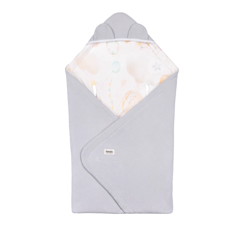 La manta envolvente Lionelo Grey Balloon está fabricada con los materiales naturales, tales como el algodón y bambú- y es suave al tacto y delicada con la piel para la silla de auto, pero también para el capazo o la silla de paseo. Para todo el año - también adecuada para otoño e invierno. La manta envolvente sirve para garantizar el confort térmico y la seguridad del niño: sustituye, por ejemplo, a la chaqueta que el pequeño no debe llevar cuando viaja en la silla del coche. Así, las correas quedan cerca del cuerpo del niño, lo que aumenta la protección en caso de colisión, y el niño puede mover libremente las piernas y los brazos.