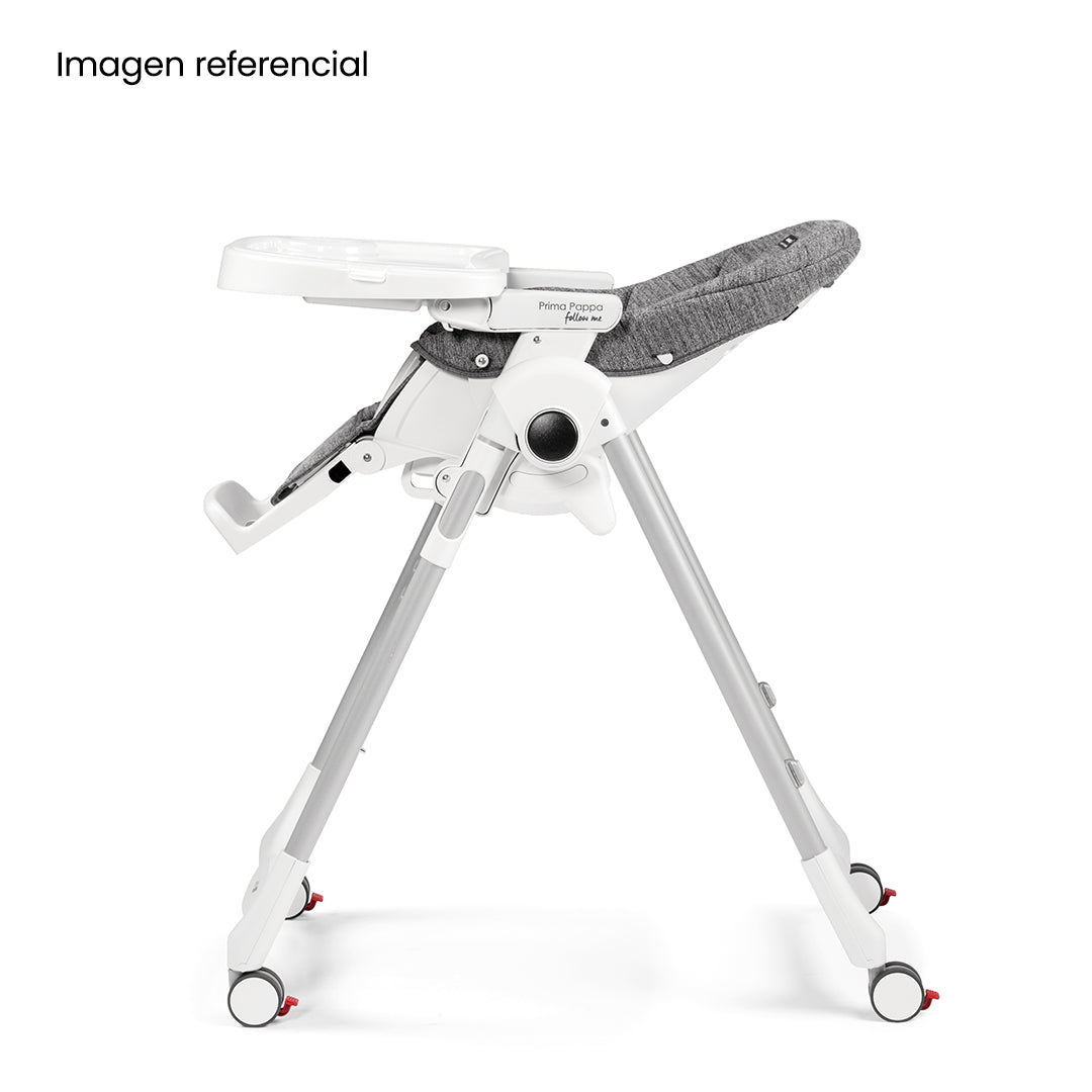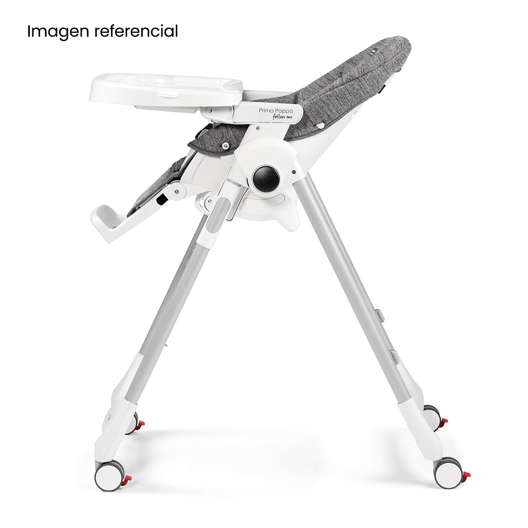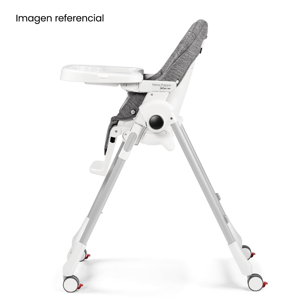 La silla de comer se desplaza con facilidad por toda la casa, gracias a su peso, tamaño reducido y sus ruedas. Cerrada es muy compacta, ocupa poco espacio y es fácil de guardar.