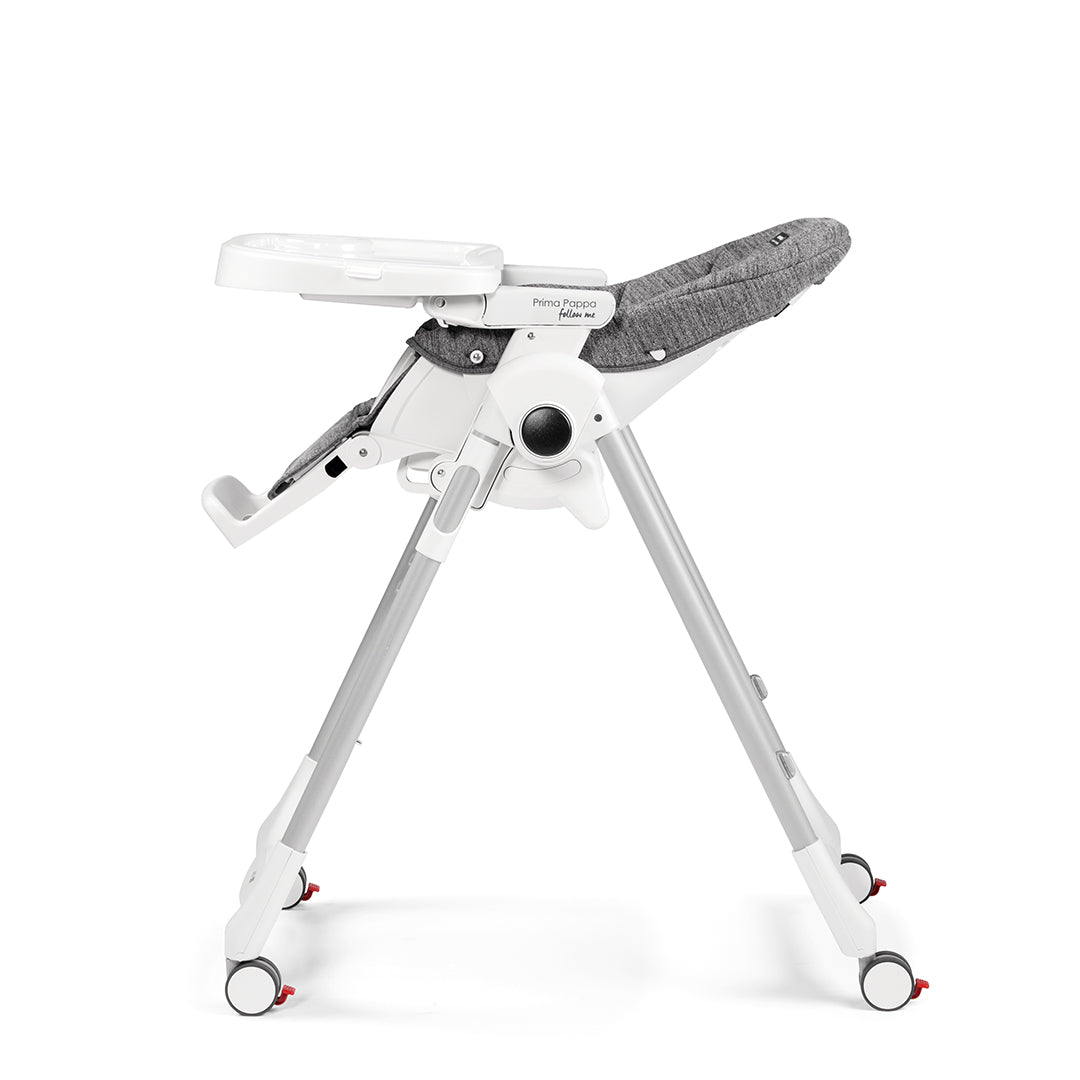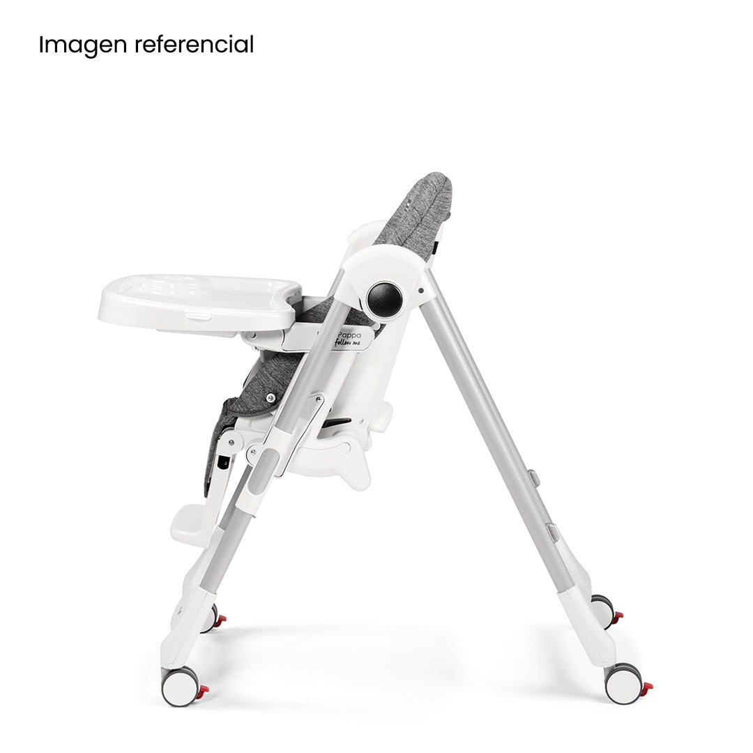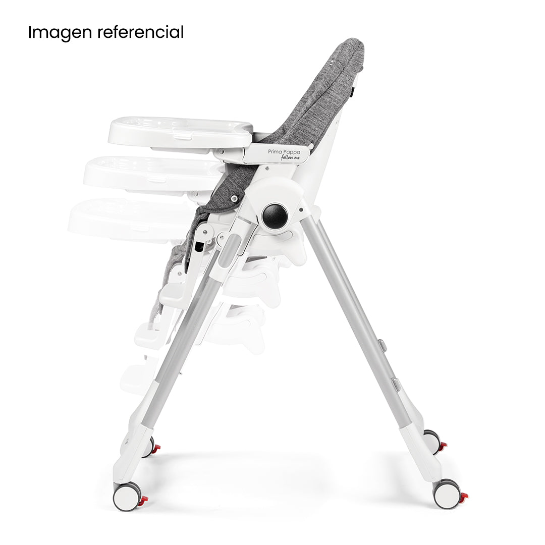 La silla de comer se desplaza con facilidad por toda la casa, gracias a su peso, tamaño reducido y sus ruedas. Cerrada es muy compacta, ocupa poco espacio y es fácil de guardar.