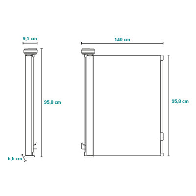 El amplio rango de ajuste -hasta 140 cm- hace de la barrera Thea un producto versátil que será perfecto para muchos espacios diferentes. Permite cerrar no solo una escalera o una habitación, sino que también cualquier espacio más amplio. Es una alternativa excelente a las puertas tradicionales de metal o madera, sobre todo porque puede instalarse en cualquier sitio.
