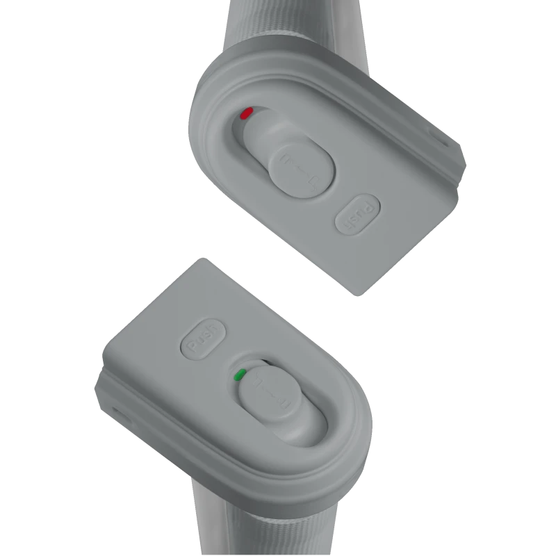 El mecanismo de doble bloqueo significa que la puerta solo puede abrirse pulsando una combinación de botones al mismo tiempo, lo que impide que el niño abra el bloqueo por sí mismo. Además, un indicador informa al usuario de si el bloqueo de extensión está activo.