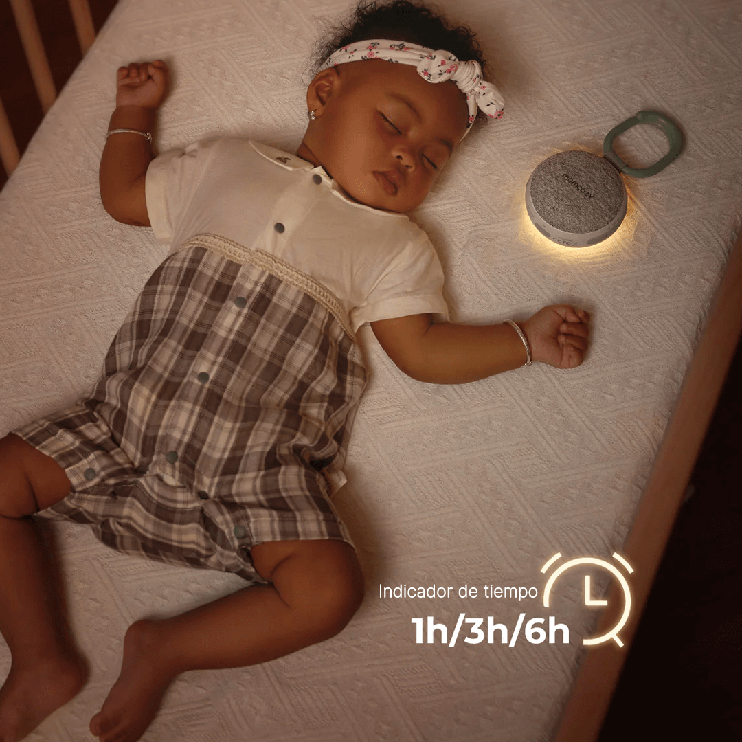 20 opciones de sonido (white noise, ventilador, naturaleza, nanas) para enmascarar ruidos y favorecer el sueño.