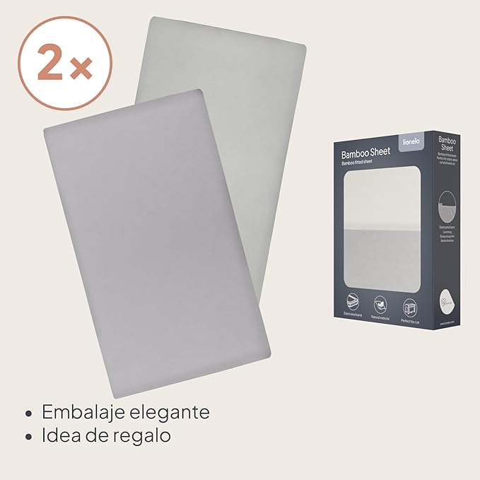 - JUEGO DE 2 UDS. EN PAQUETE DE REGALO: la sábana de cuna de bambú se vende en un juego de 2 piezas. El elegante envase lo convierte en un práctico regalo para los padres, ideal para baby showers y otras ocasiones relacionadas con el nacimiento.