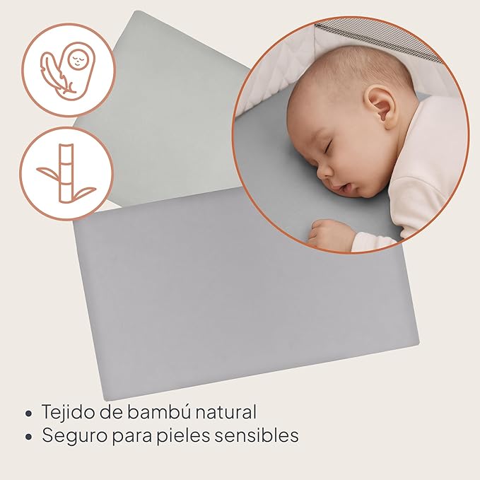 - TEJIDO DE BAMBÚ, LISO: Sábana bajera de bambú con elástico para cuna 60x118 cm, suave, transpirable y adecuada para pieles sensibles. Las fibras naturales regulan la temperatura, garantizando un sueño confortable tanto en verano como en invierno.