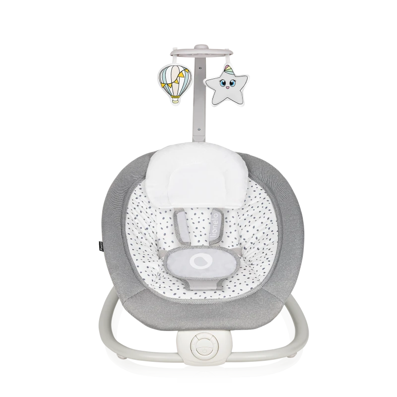 Lionelo Pascal es una hamaca mecedora cómoda de llevar, con vibraciones y ajuste del respaldo de 3 niveles. Esto permite a los padresajustar la posición del bebé a su estado de ánimo actual. La hamaca se pliega en plano y puede llevarse de viaje o de visita familiar rápida.