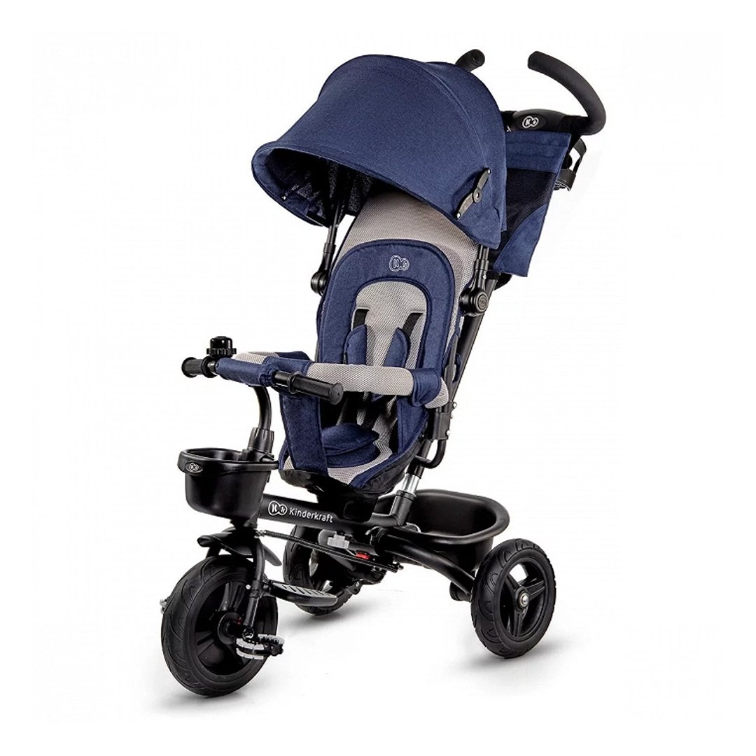 Tiene un asiento blando y amplio. Su posición puede ajustarse a la altura del niño para que sus pies lleguen siempre a los pedales. Si el niño aún no monta la bici de forma independiente, podemos utilizar la función de rueda libre para enseñarle a pedalear. El triciclo AVEO dispone también de una capota impermeable, que protege perfectamente de la lluvia y del sol. Además, la bicicleta está equipada con accesorios en forma de 2 cestas para todos los tesoros infantiles.
